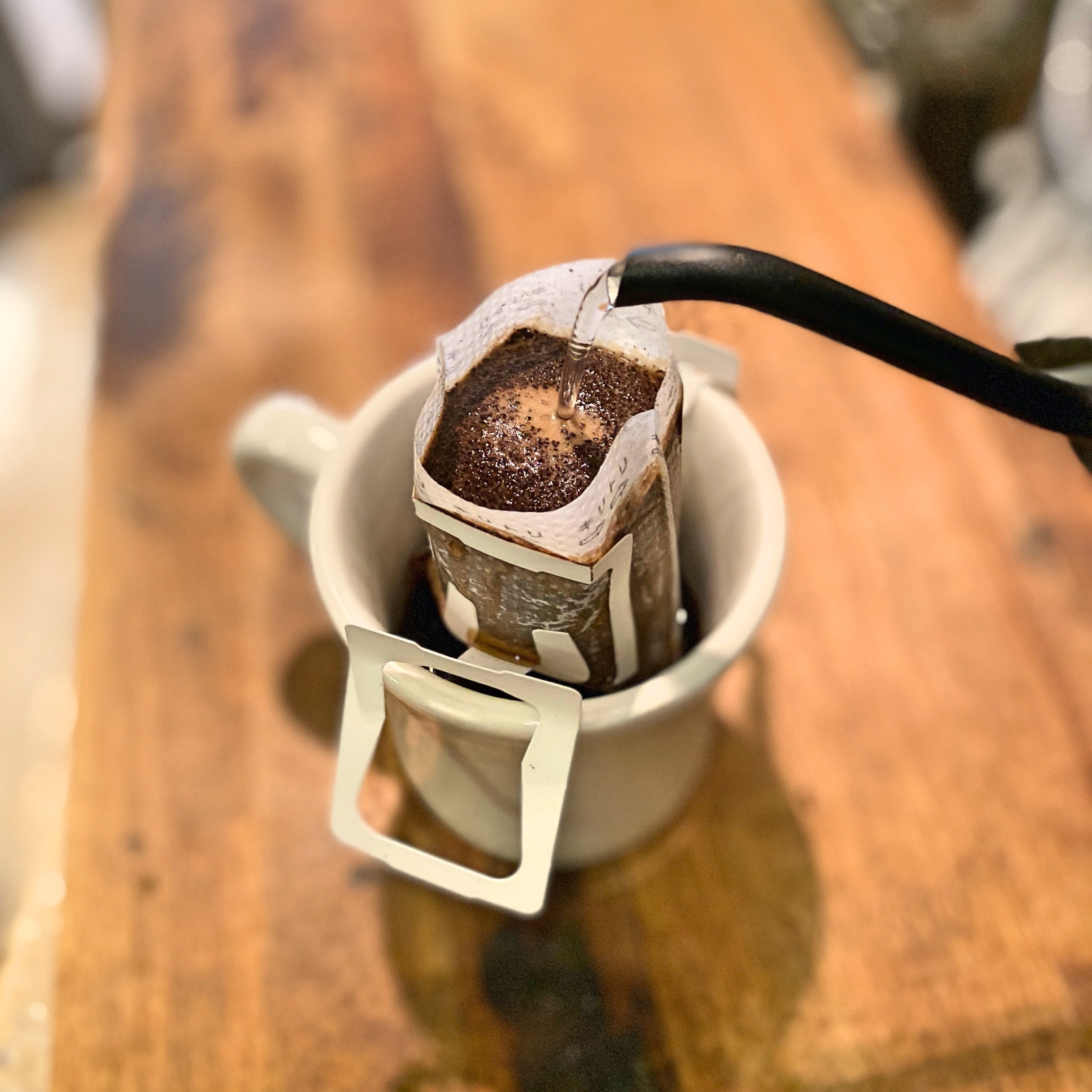 手軽で美味しいドリップバッグコーヒー(定番の深入りドロップブレンド)5パックのセットです。
